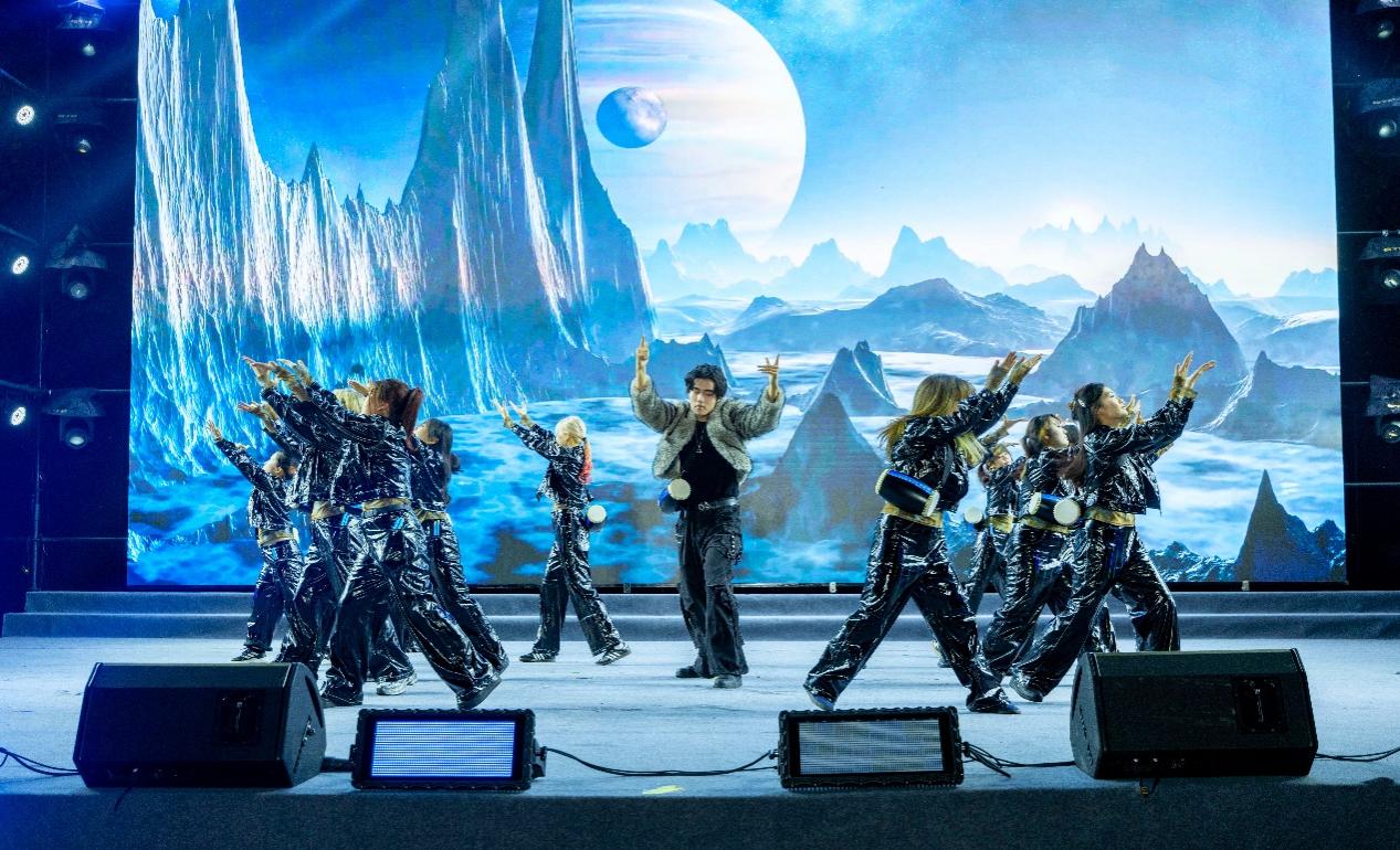 第二篇章“新Young启航·逐梦成贤”以“成长”为题,用热爱诠释逐梦的坚定。舞蹈《开天》以极具张力的舞姿,演绎青春无畏的闯劲;歌曲串烧《胡广生》《倔强》在深情叙事与励志呐喊间切换,唱出青年的赤子之心;器乐《金陵四季》用旋律勾勒古都南京的四季盛景,让地域文化与校园情怀相融;2025级新生辅导员惊喜亮相舞蹈《爱你》,用灵动舞姿传递温暖期许;歌舞《天地龙鳞》更以恢弘气势展现祖国山河的壮阔与社会和谐的图景,将现场氛围推向高潮。
