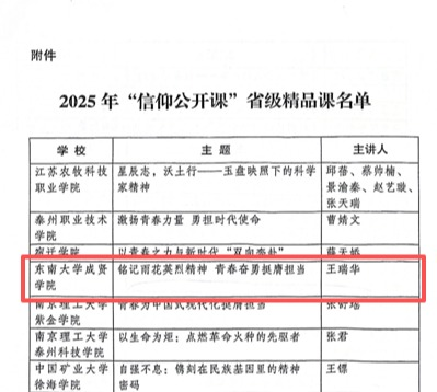 近日,共青团江苏省委员会公布了2025年“信仰公开课”省级精品课征集结果,yl6809永利官网辅导员王瑞华主讲的《铭记雨花英烈精神 青春奋勇挺膺担当》成功入选。